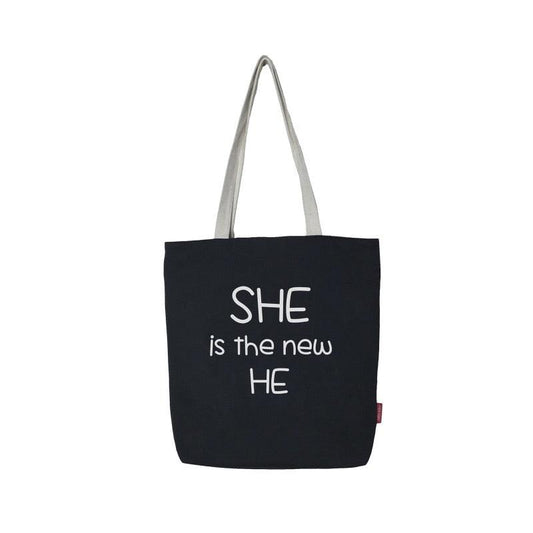 Stevige boodschappentas "She Is The New HE" | 2 Kleuren